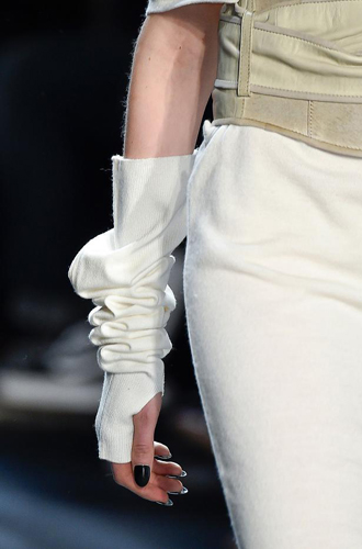 Главным трендсеттером выступил Chanel, продемонстрировавший вязаные перчатки-митенки, совпадающие по цвету со всем образом. Вязаные модели появляются также на показах Prada, Oscar de la Renta и Nicholas K.