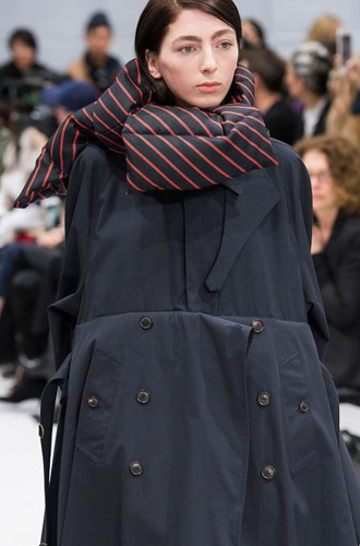 Когда дело доходит до тенденций на шарфы, мы невольно думаем: «Ну, что нового тут можно изобрести?». Как оказалось, можно! Настоящим инноватором выступил Демна Гвасалия, создавший для Balenciaga революционные стеганые шарфы на пуху. Аксессуар получился не только мегатеплым и удобным, но еще и очень модным. Новый тренд подхватили также Chanel и Iceberg. Полушарф-полупуховик появляется на подиумах в разных расцветках. Завязывают странный аксессуар модельеры тоже по-разному: Iceberg стягивает пуховой шарф плотно под горлом модели, в то время как Balenciaga непринужденно накидывает его на хрупкие плечи девушек.
