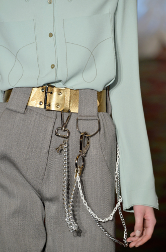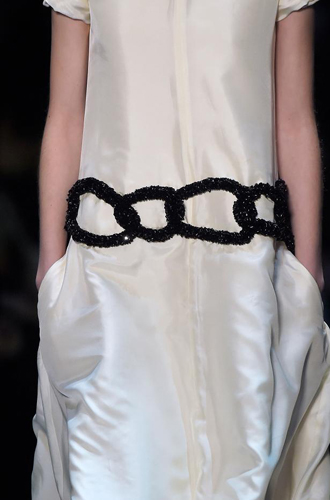 Грядущий сезон готовит для вас множество ярких и оригинальных деталей, по-настоящему оценить которые смогут лишь самые смелые и дерзкие. Chanel демонстрирует ремни с пряжкой в форме сердца, инкрустированной сияющими камнями, Moschino – пряжки в виде черепов, которые отлично гармонируют с свисающими с ремня грубыми цепями, а Saint Laurent и Maison Margiela иллюстрируют правило «чем больше, тем лучше», выводя на подиум моделей, опоясанных ремнями с гигантскими пряжками. DSquared2 буквально изрезал классический мужской смокинг и сделал из него ремень к брюкам в стиле casual. Celine тем временем смастерил пояс из блестящих черных колец.