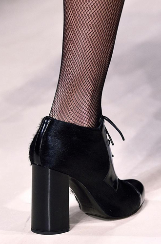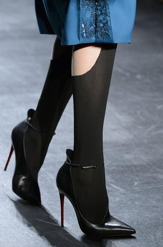 Колготки и носки в крупную и мелкую сетку дизайнеры сочетают с остроносыми туфлями. Провокационный и сексуальный тренд подхватили такие бренды, как Max Mara, Jeremy Scott и Antonio Marras.