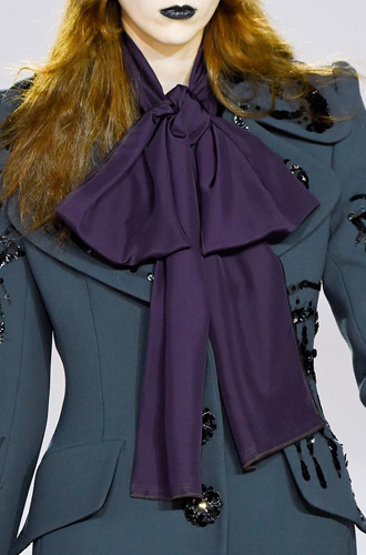 Если хотите почувствовать себя девушкой-сюрпризом, то стоит подумать и о красивой обертке. Например, можно украсить себя романтичным и женственным бантом. Конечно, бежать в магазин упаковки никто вас не призывает – роль ленточки вполне может исполнить ваш любимый шейный платок. А если такового у вас до сих пор нет, то советуем обратить внимание на осенне-зимние предложения от Marc Jacobs, Sonia Rykiel, Temperley London, Tory Burch, Gucci и Custo Barcelona.