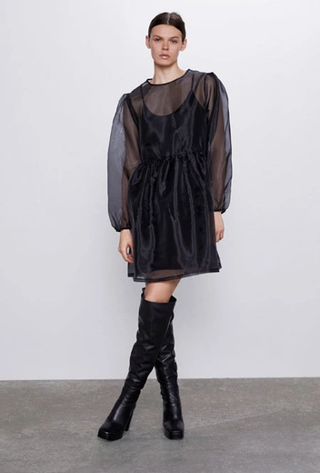 Один из ключевых трендов недели моды prêt-à-porter и отличный инструмент для создания практичных и повседневных образов идеально смотрится и на вечерних мероприятиях. Те, кто хочет пойти легкой тропой, могут примерить сдержанные платья с полупрозрачными рукавами-буфами. Для самых смелых экспериментов советуем приобрести прозрачное платье, которое станет главной основой для многослойного новогоднего образа: к нему подбираем практичные джинсы или брюки, минималистичный топ и крупные украшения. Кроме того, вниз можно надеть базовую шелковую комбинацию.