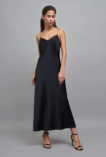 Одна из самых универсальных вещей не только для новогоднего торжества, но для любого другого события. Шелковые комбинации достались нам в наследство от модниц 90-х и, кажется, стали самым полезным фэшн-подарком этой эпохи. Удивительно, что это одна из немногих вещей, которая подстроится под гардероб разных стилей – и романтический, и сдержанный классический, и спортивный, и гранжевый. В будние дни носим с футболками, оверсайз-куртками, рубашками, кроссовками, грубыми ботинками и сапогами, а вечером добавляем к нему изящные открытые босоножки с тонкими перемычками или трендовые босоножки на массивной платформе в стиле 70-х. Клатч необычной формы, крупные серьги, легкая укладка – и образ для новогодней ночи готов.