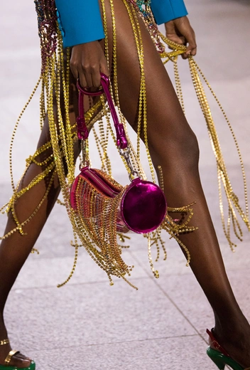 Аксессуары, усыпанные переливающимися кристаллами и пайетками, ознаменовали возвращение в моду клубной эстетики 70-х. В новом сезоне стразы будут везде: от украшений на голове и обуви до сумок. Последние особенно интересны: выбирайте сумки с ненавязчивым декором из камней, как у Christopher Kane, или украшенные длинными нитями из страз, играющих при ходьбе, как у Area.