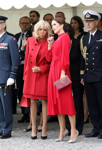 Забавное цветовое пересечение в образах случилось у принцессы Мэри и Первой леди Франции во время визита четы Макрон в Копенгаген. Такой double dressingг публика приняла с улыбкой, но образы датской и французской модниц достойны внимания и обособленно друг от друга. Алое мини-платье и пальто в тон от Макрон еще раз показывают нам, насколько уместным и лаконичным может быть красный цвет. И если вам кажется, что такой активный оттенок вам не подойдет, стоит методом проб и ошибок все же поискать наиболее выигрышный лично для вас (не устаем повторять это вновь и вновь). Брижит и принцесса Мэри, кажется, свой идеальный уже нашли.