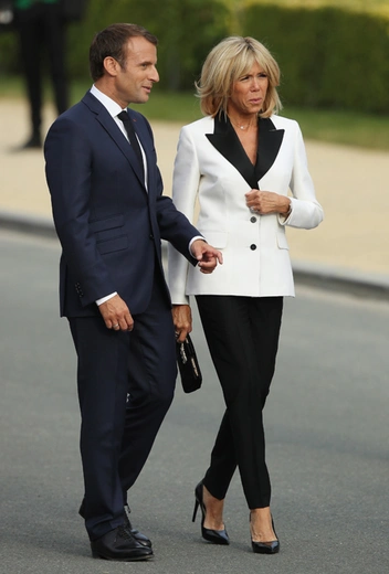 Как правило, наряды Первых леди призваны подчеркивать изящность и женственность. Однако Макрон наглядно показывает, насколько идеально для таких целей подходит классический костюм (и не только на саммите НАТО). Макрон делает ставку на белый вариант с контрастными черными лацканами, и к такому не обязательно скрупулезно подбирать аксессуары.