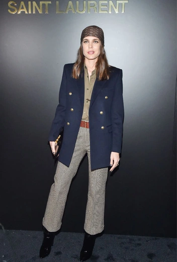 Но если вам кажется, что эта тенденция – атрибут лишь любителей хип-хопа, спешим вас разуверить. Перед микро-трендом не устояли даже современные королевские особы. Внучка легендарной Грейс Келли Шарлотта Казираги примерила бандану для показа Saint Laurent. Наследница монакского престола решила стилизовать ее в духе 70-х и дополнила наряд брюками в клетку, рубашкой цвета хаки и темно-синим двубортным жакетом с золотыми пуговицами.
