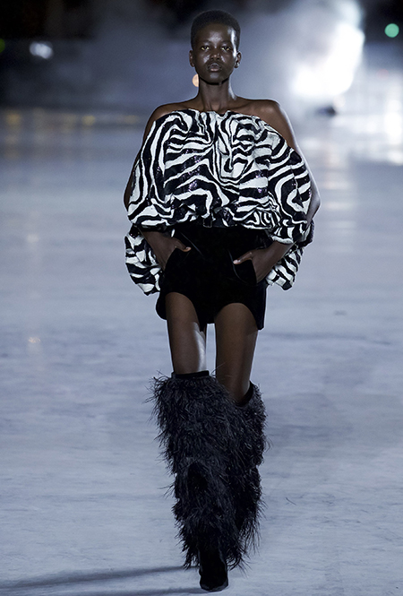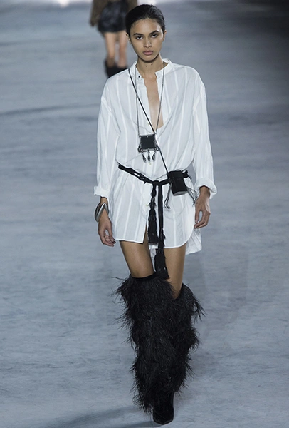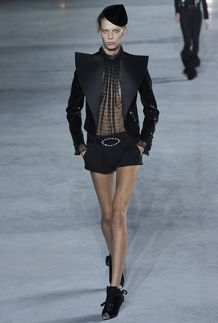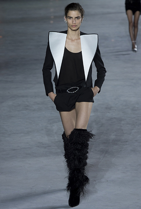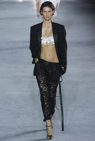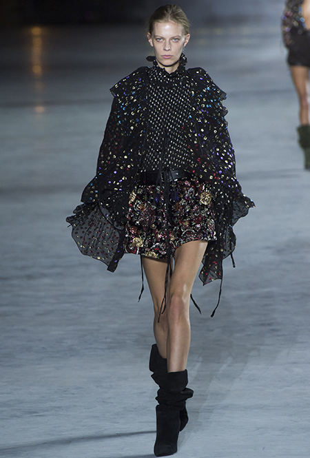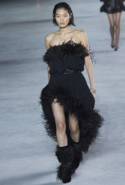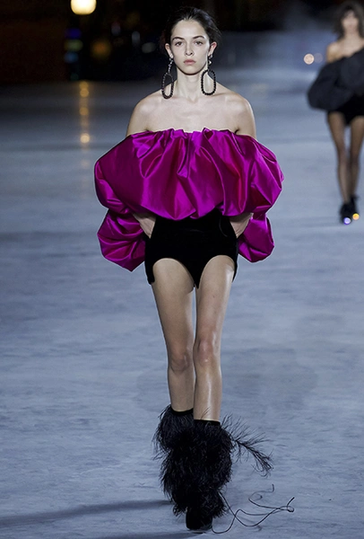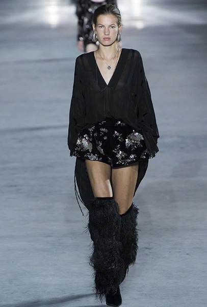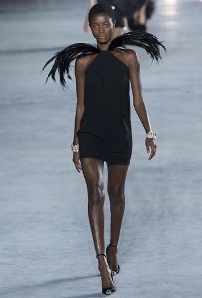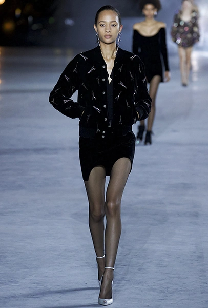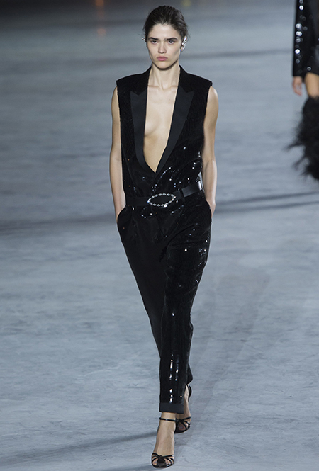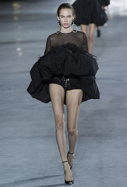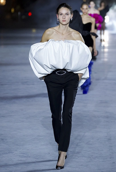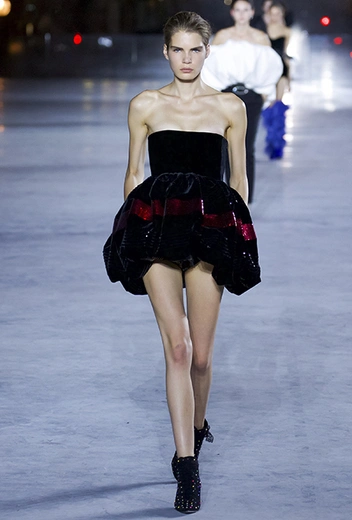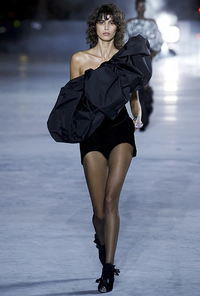 Показ прошел в районе Трокадеро, под открытым небом, с видом на сверкающую огнями Эйфелеву башню – лучших декораций для презентации коллекции самого «парижского» модного дома и придумать было нельзя. Впрочем, Энтони Вакарелло любит подчеркивать, что его муза не гипотетическая «парижанка», которую благотворил сам Ив, а, скорее, женщина-космополит – она может жить в любой точке мира, при этом в ней с первого взгляда угадывается стиль Saint Laurent.