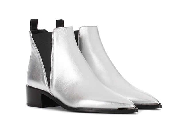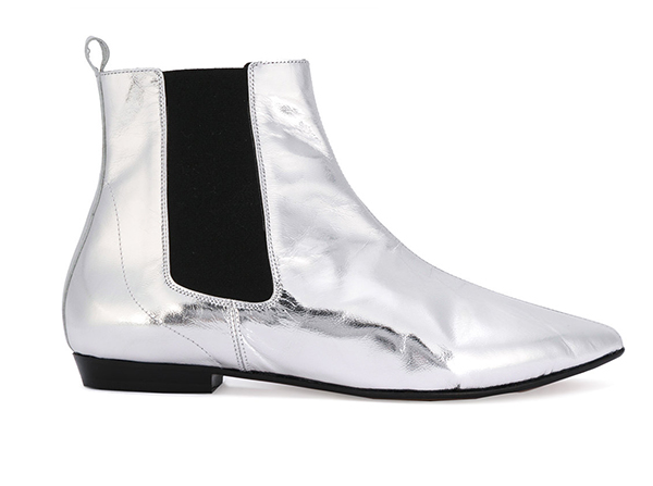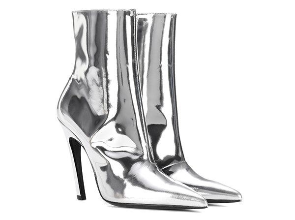 Самой «космической» обувью этого сезона дизайнеры объявили серебристые ботильоны. Вообще говоря, аксессуары с глянцевым металлическим блеском — совсем не новость в мире моды, но нынешней осенью это увлечение приняло просто вселенские масштабы. Так, свои варианты ankle boots в оттенке silver наличествуют практически у всех авторитетных модных брендов: узконосые — у Balenciaga, на низком каблуке — у Isabel Marant, на высокой шпильке — у Off-White. Поддался космическому искушению даже такой далекий от эстетики футуризма бренд, как Dolce & Gabbana.