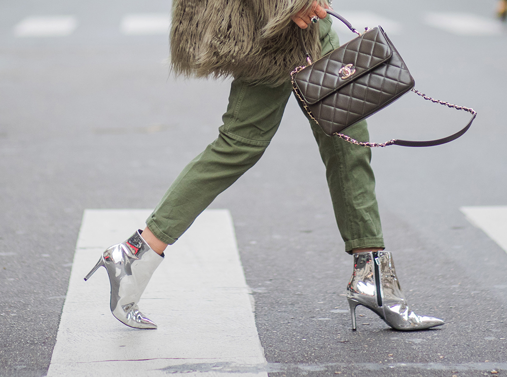 Поддались ему и герои street style хроник, провозгласив серебристые ботильоны чем-то вроде новых бежевых лодочек для осенней погоды. Если же и вам хочется «блеснуть» обувью (а заодно и знанием модных трендов), мы советуем носить их с другими остромодными предметами гардероба — с укороченными брюками, романтичными платьями в рюшах и клетчатыми жакетами. Не пытайтесь применить к ним привычные стилистические правила: серебристые ботильон — то самое, «дурацкое» исключение. Такая пара действительно подойдет практически ко всему.
