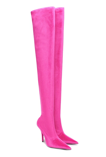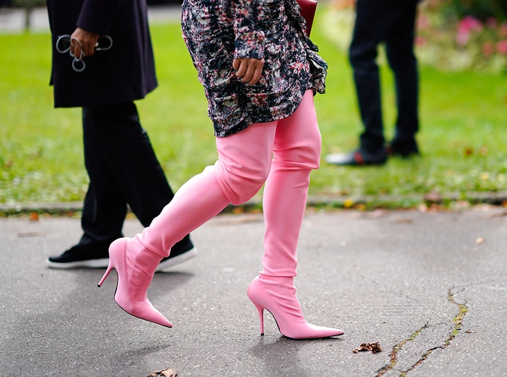 За последнее время эволюция популярных ботфортов впечатляет: сначала все обувались в замшевые сапоги натуральных оттенков на плоском ходу. После — сексуальные варианты на шнуровке в духе Balmain. Последние же два сезона в авангарде разноцветные остроносые сапоги-чулки: за это мы благодарим Демну Гвасалию, показавшего их в коллекции для Balenciaga.