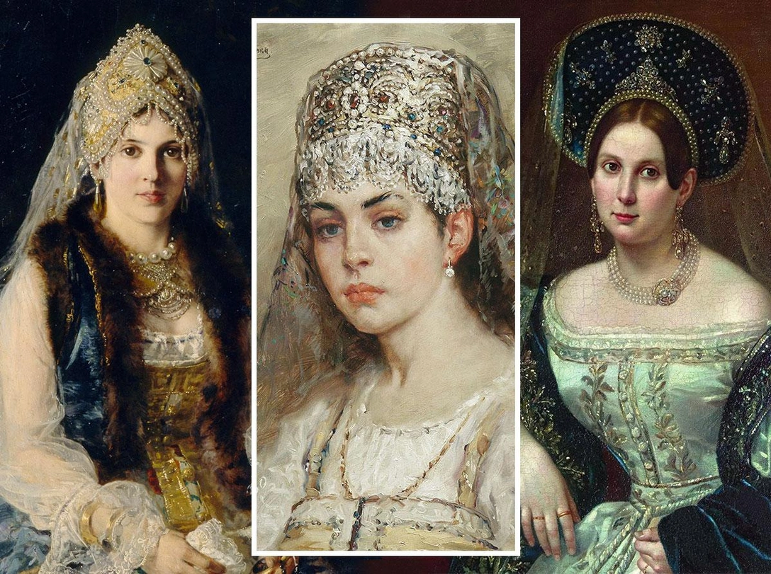 Русский народный костюм отличается обязательным головным убором, который носили как девочки, так и женщины. Юные красавицы надевали ленты, повязки, венки или платки, сложенные в форму жгута, у замужних же дам голова всегда должна была быть прикрыта, поэтому они примеряли на себя тяжелые аксессуары, вес которых мог достигать пяти килограммов (читайте также: Из России с любовью: почему европейские монархи начали носить тиары-кокошники).