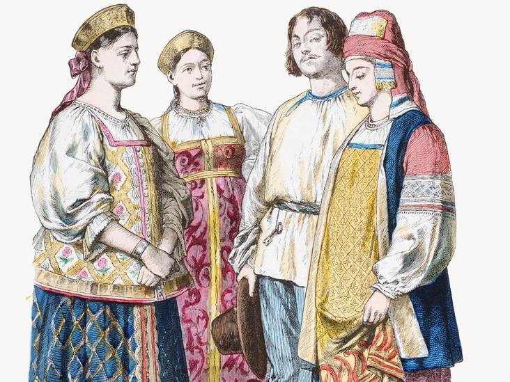 Принять гардероб древнерусских женщин нам не под силу, так как сегодня мы выбираем для себя комфорт, а только потом обращаем внимание на красоту и детали. Тогда же все было наоборот: дамы носили килограммовые платья и головные уборы, подбирая к нарядам жесткую обувь. На Руси признаком богатства была именно многослойность, вот почему женщины из знатных сословий носили пышные юбки и тяжелые жакеты, под которыми им было трудно дышать. О том, как мода того времени изнуряла женщин и требовала жертв — читайте в материале.