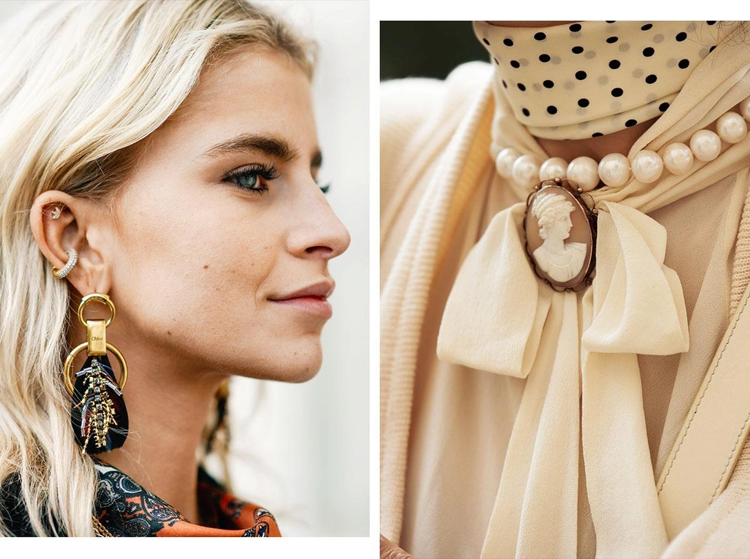 Камею было принято носить на цепочке или бархатной ленте, либо инкрустировать ее в брошь или медальон. Сегодня она украшает серьги и кольца, а модницы носят их в сочетании с массивными цепями. Вдохновиться можно выходами Рианны, большой поклоннице камей, — она ловко вписывает аксессуар в спортивные образы.