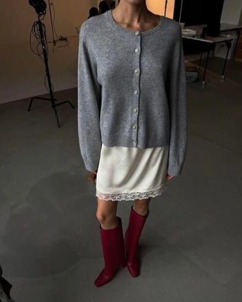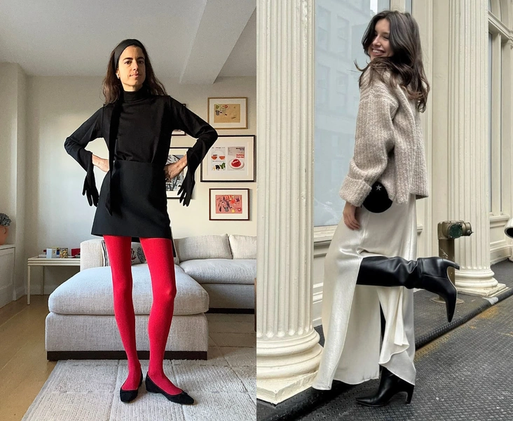 Главный секрет — в правильном балансе легкости и тепла. Сочетайте летние ткани, будь то шелк или кружево, с плотными зимними фактурами — кашемировыми свитерами, шерстяными юбками и длинными пальто. Так, атласное платье или юбку можно стилизовать с объемным оверсайз-свитером. Такая игра на контрастах и «сочетание несочетаемомго» — ключ к беспроигрышному внесезонному образу. А чтобы аутфит был не только модным, но и практичным, обязательно позаботьтесь о здоровье и наденьте термобелье и высокие сапоги (читайте также: Утепляемся: как выбрать термобелье на зиму — полный гид).