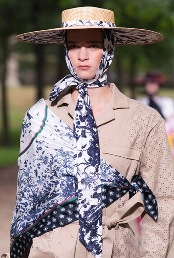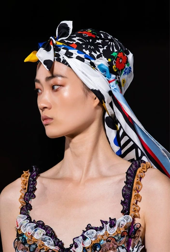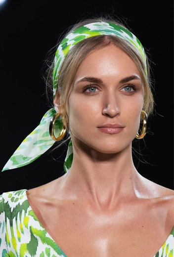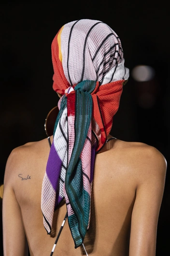 В новом сезоне мы будем носить платки на манер 70-х годов, а также банданы, как было модно в 90-е. Как именно стилизовать платок сейчас, решаете только вы. Лучше приобрести красочный вариант или косынку, идеально подходящую под цветовую палитру вашего гардероба, и пробовать разные варианты: повязать вокруг хвоста, смастерить чалму, спрятать концы платка или оставить их небрежно свисающими. Еще одна идея для образа – аккуратная косынка из шелка, как на шоу Brandon Maxwell. Вдохновение для самых стильных образов также стоит поискать в образах Etro, Saint Laurent и Roland Mouret (читайте также: Как носить шелковые платки: 10 самых простых и стильных способов).