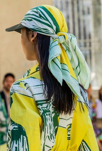 Бейсболки постепенно сдают свои позиции, однако уходить они не собираются. Off-White показали кепку с потертостями в конфетно-розовом цвете. A Salvatore Ferragamo решил проапгрейдить устаревшую бейсболку и объединили ее с платком – получился более свежий и необычный вариант, который идеально вписывается в летний гардероб.