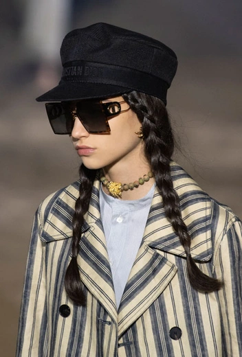 На первый план также вышли цветные кепи, как на шоу Dior и Max Mara – носить их лучше в тотал-луках, координируя головной убор с цветами вашего наряда.