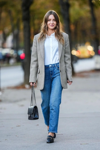 Slim fit — это узкие джинсы, которые отличаются от облегающих фасонов тем, что слегка расширяются возле щиколоток. Мы выбираем именно такую модель, потому что она, в отличие от одежды с широкими штанинами, не прячет ноги, а именно грамотно их подчеркивает. Главное правило при выборе джинсов Slim fit — отдавать предпочтение плотным тканям в классических цветах: белом, синем и черном. Откажитесь от разрезов, инфантильного декора, принтов и выбеленных материалов, которые только увеличат ваши объемы (читайте также: Избегайте их: 5 принтов, которые старят всех женщин после 40 лет).