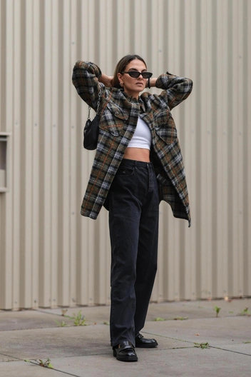 Выбирайте брюки или джинсы исключительно на высокой талии, так как она, в отличие от средней или низкой, не нарушает пропорции женской фигуры. К тому же такая посадка вытягивает силуэт и подтягивает бедра вверх, визуально убирая излишний объем, в том числе и на животе (читайте также: 5 роковых ошибок девушек plus size, или Почему у вас не получается выглядеть стильно в любом весе). Помните, что высокая талия всегда будет актуальна, так как, не смотря на сезонные тренды, она продолжает возглавлять мировые тенденции из года в год.