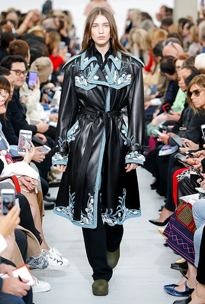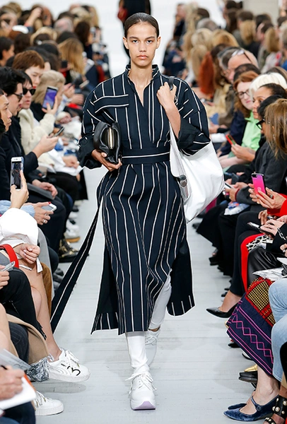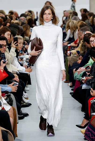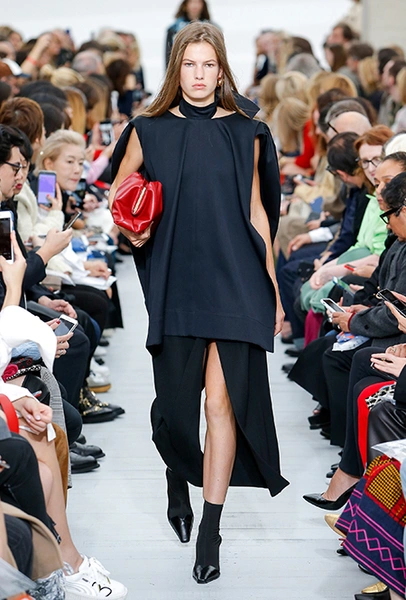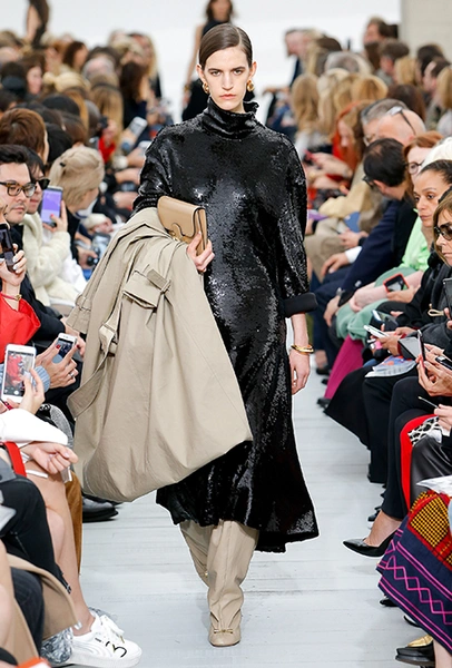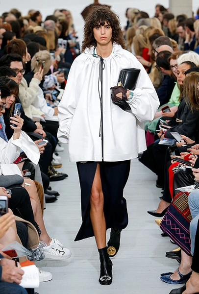 Восьмидесятые годы безоговорочно можно признать главной эпохой-референсом для дизайнеров на парижской Неделе моды. Вот и Фиби Файло не осталась в стороне от увлечения вещами oversize и графичными Х-силуэтами. Креативный директор Celine признается, что, создавая коллекцию, погрузилась в мир рекламных съемок 80-х, когда умами владели дизайнеры, вроде Клода Монтана и Ги Лароша. В числе прочего, эта эпоха привлекла ее тем, что тогда люди не знали о существовании ВИЧ и СПИДа, а значит, были хотя бы немного счастливее и свободнее наших современников.
