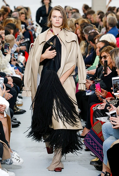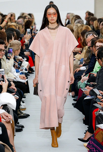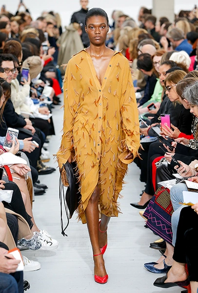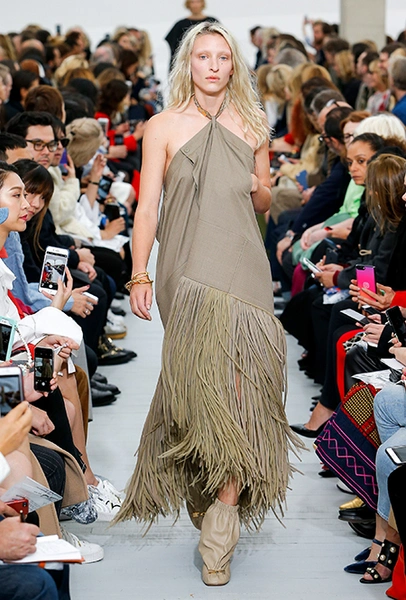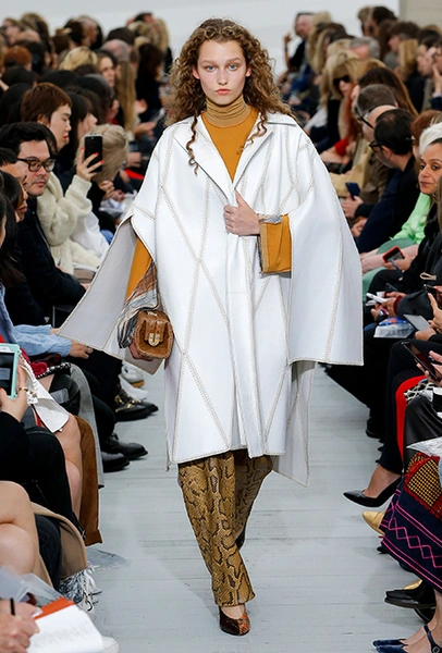 Файло хотела сделать коллекцию яркой и жизнерадостной. Ей это удалось, но с поправкой на ДНК Celine – марки, тяготеющей к минимализму и сдержанности. Желтый, изумрудный, оранжевый, винный – цветов здесь хватает, но все они слегка приглушенные, будто на старой, немного выцветшей фотографии. Впрочем, эффектными вещи делает и работа с текстурами – здесь нашлось место блестящим тканям, гладкой коже и отделке в виде длинной бахромы.