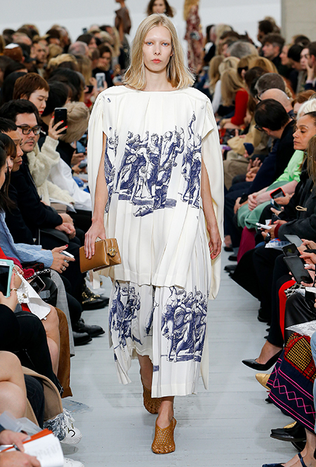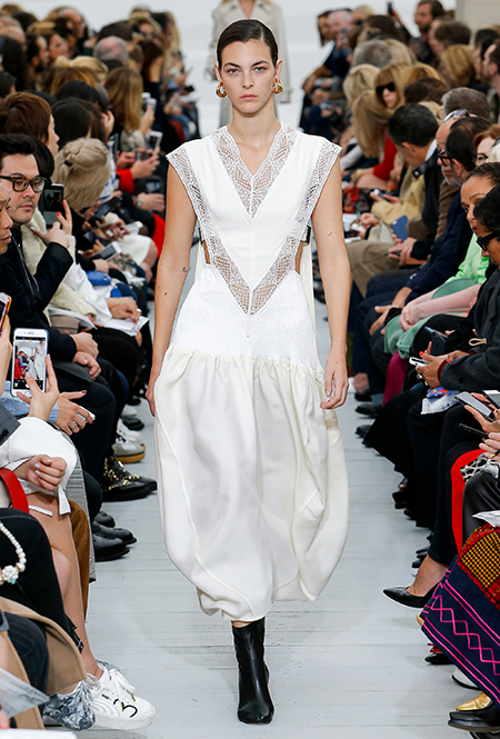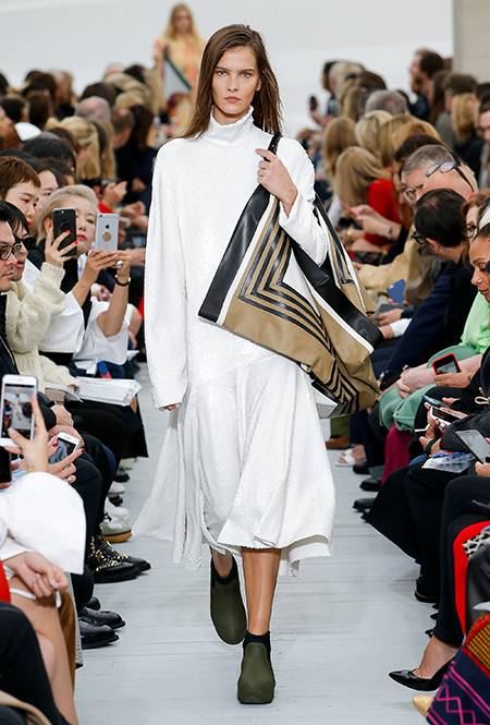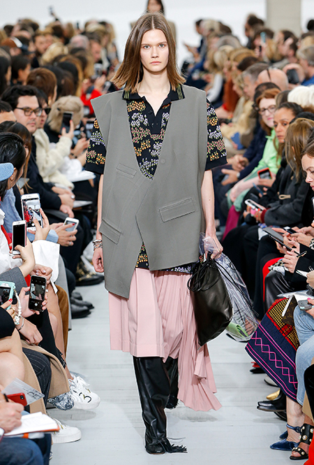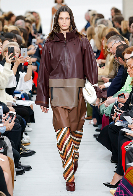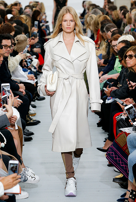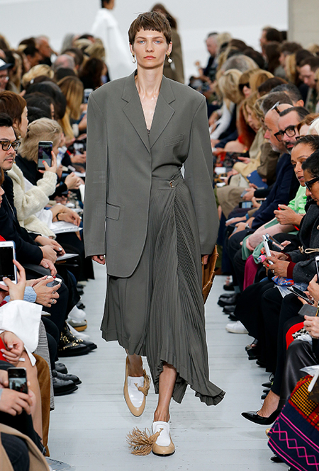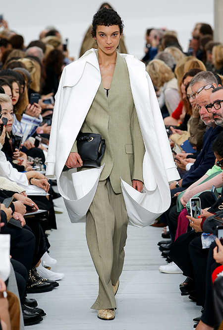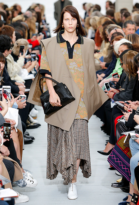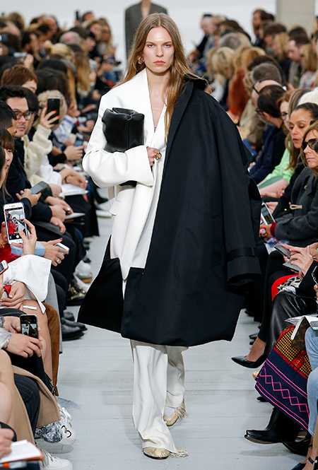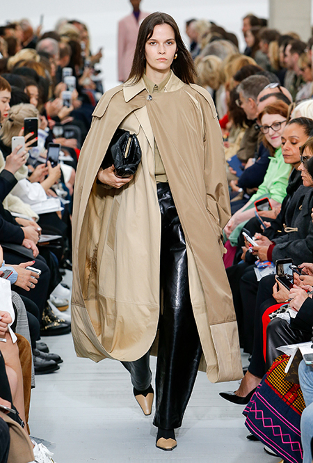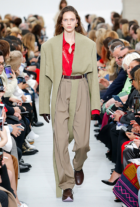 Восьмидесятые годы безоговорочно можно признать главной эпохой-референсом для дизайнеров на парижской Неделе моды. Вот и Фиби Файло не осталась в стороне от увлечения вещами oversize и графичными Х-силуэтами. Креативный директор Celine признается, что, создавая коллекцию, погрузилась в мир рекламных съемок 80-х, когда умами владели дизайнеры, вроде Клода Монтана и Ги Лароша. В числе прочего, эта эпоха привлекла ее тем, что тогда люди не знали о существовании ВИЧ и СПИДа, а значит, были хотя бы немного счастливее и свободнее наших современников.