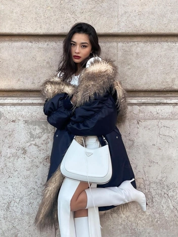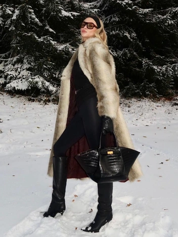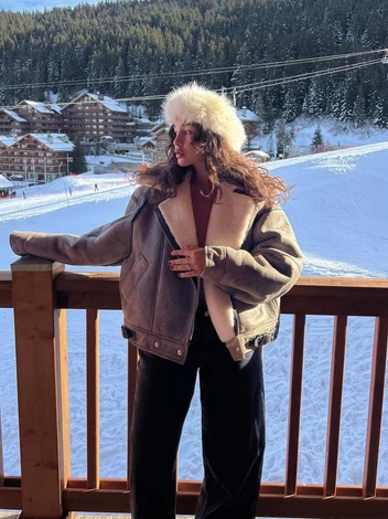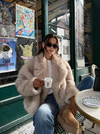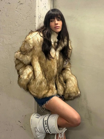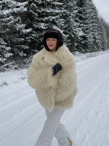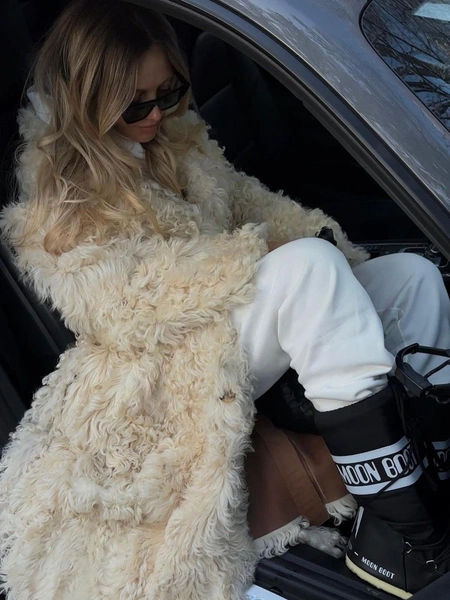 Сейчас такая верхняя одежда снова бьет все тренды: девушки надевают самые пушистые шубы, которые, как правило, выполнены из экомеха и имитируют натуральный. Отдавайте предпочтение естественным оттенкам: бежевому, молочному, черному, серому и коричневому — они наиболее близко олицетворяют гардероб тех самых Slavic Bimbo из нулевых.