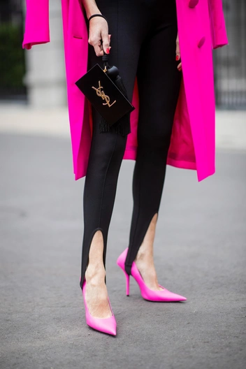 Кислотные цвета добавить в гардероб немного проще. Если хотите быть модной и стильной, но такие цвета вас раздражают, используйте их внизу или добавьте к образу в виде аксессуаров. Например, кислотные колготки с черным платьем или яркая сумочка к спокойному образу.