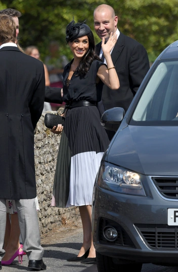 Новоявленная герцогиня Сассекская сумела поразить публику конфузом с бельем прямо в начале своей жизни в королевской семье. Этот период для нее был крайне сложным: новый статус, повышенное внимание и страх совершить ошибки, ведь за любой промах публика будет ее судить. Несмотря на то, что Меган и ее помощники в деталях продумывали каждый образ, яркого провала было не избежать. После собственной свадьбы Гарри и Меган отправились на венчание друзей. Здесь королевская особа появилась в легком черном образе с плиссированной юбкой и элегантной шляпкой. Наряд выглядел безупречно, если бы не одно «но»: герцогиня забыла застегнуть несколько верхних пуговиц и явила миру кружевной бюстгальтер. После громкого провала и сотен статей в изданиях герцогиня впросак больше не попадала (читайте также: Что такое королевский протокол и действительно ли Меган Маркл всегда его нарушает).