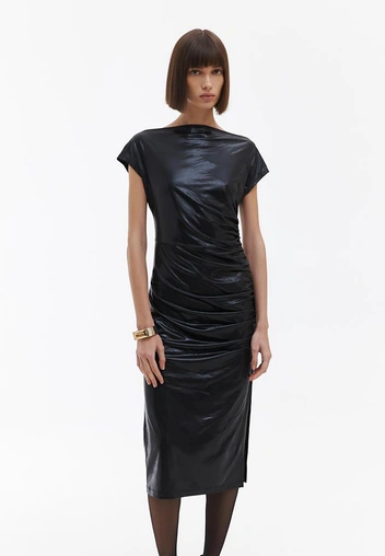 Есть еще одно сочетание, которое сегодня нельзя допускать — кожаные брюки и блестящая одежда. Это относится и к вещам в золотых оттенках, и нарядам с самым трендовым эффектом прямо сейчас — металлик. Касается это и самих брюк, например, выкрашенных в серебро. Одежда в подобном цветовом решении становится опасной «игрушкой» и требует грамотного подхода, так как в подобной стилизации легко переборщить с сиянием и получить вместо обворожительного образа вульгарный и старомодный.
