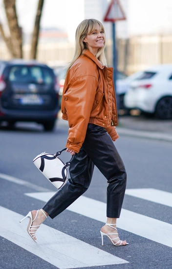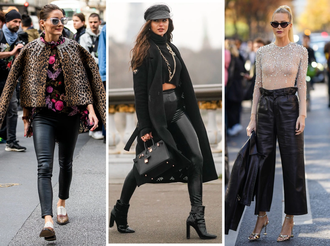 Такое сочетание было популярно в 2010-х годах, когда девушки носили облегающие кожаные брюки, напоминающие леггинсы, и сочетали их с короткими водолазками или топами. Но мода и времена меняются, и сегодня в образе мы выбираем баланс, например, облегающий верх и свободный низ или обратный прием (читайте также: Как носить кожаные брюки: самые стильные и простые сочетания).