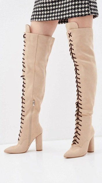 Шнуровка на ботфортах давно вышла из моды и больше не мелькает на Неделях моды и стритстайлах. Сегодня такая модель — признак безвкусицы и вульгарности. Стильной альтернативой станут классические ботфорты без декора. Если вы хотите придать образу пикантности, рекомендуем присмотреться к сапогам-чулкам на шпильках или же сапогам-трубам с фигурным каблуком. Стилизуйте обувь с оверсайз пальто и джемпером в монохромном цвете.