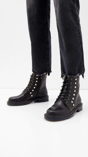 Когда вы выбираете ботинки со шнуровкой, обращайте внимание и на остальные элементы декора. Не так давно обувь с камнями, стразами и оборками была на пике популярности, но сейчас это выглядит нелепо (читайте также: Никто не ждал: 6 антитрендов, которые снова вернулись в моду — а вы их помните?). Следуйте главному тренду, который не покидает нас уже несколько лет — минимализму, и носите лаконичные сапоги и ботинки. Если вам хочется акцента на обуви, присмотритесь к стильным ремешками или клепкам, как на моделях Prada, Givenchy и Tod’s. Такая фурнитура точно не превратит ваш образ в антитренд.
