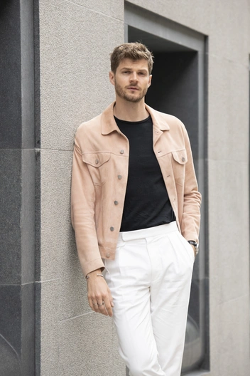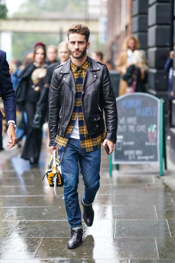 Классический вариант кожаной косухи будет смотреться в разы эффектнее. Если этот вариант слишком «байкерский», то можно выбрать нейтральный тип куртки: например, косуху из замши, но без клепок.