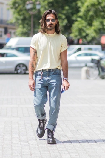 Актуальнее выбрать джинсы свободного кроя с правильной посадкой, которая подходит конкретной мужской фигуре. Как правило, универсальной является средняя посадка джинсов (читайте также: Модная инвестиция: 10 предметов гардероба, на которых нельзя экономить).