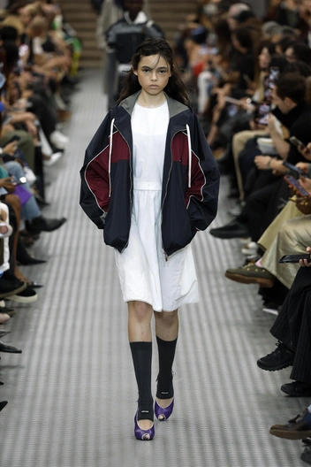Ветровка вместе с платьем в пайетках — мы о таком комбо даже не задумывались, а Миучча Прада уже сделала. На Неделе моды модели вышли в спортивных ветровках в кислотных оттенках, надетых на максимально вечерние платья с перьями и блестками. На подиумный образ решатся не все, но намек понятен — не стесняемся сочетать вещи с разных планет.