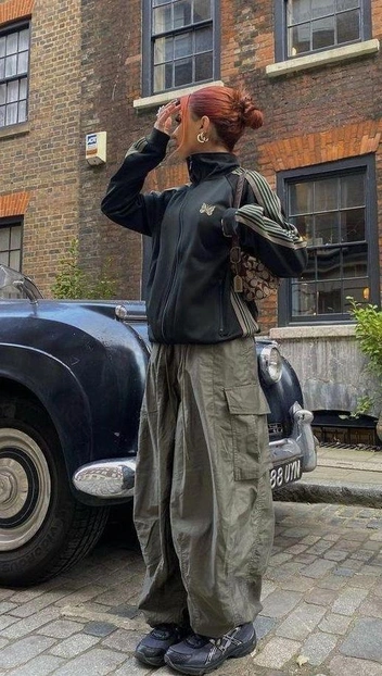 Отдать дань изначальному предназначению ветровки можно с помощью спортивного аутфита. Тем более, что айтемы в аутдор эстетике сейчас в моде. Речь о брюках карго (только широких, не узких), кроссовках Asics или Salomon, кепках Arcteryx, поясных сумках и очках Oakley — безупречное комбо в походном стиле, которое работает и в городе (читайте также: Puma Speedcat, adidas Tokyo и еще 5 модных ретро-кроссовок на лето 2025).