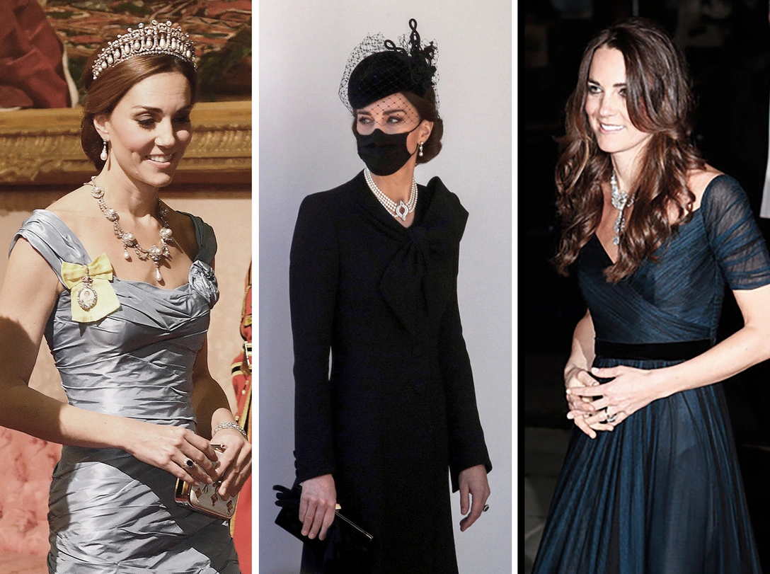 В шкатулке герцогини Кембриджской — множество роскошных украшений, как полученных в подарок от принца Уильяма, так и доставшихся по наследству, в том числе, от самой Елизаветы II. Мы решили вспомнить три самых дорогих драгоценности Кейт, которые ранее принадлежали Королеве (читайте также: Королевские драгоценности: самые роскошные украшения Елизаветы II).
