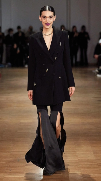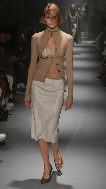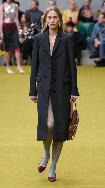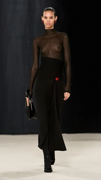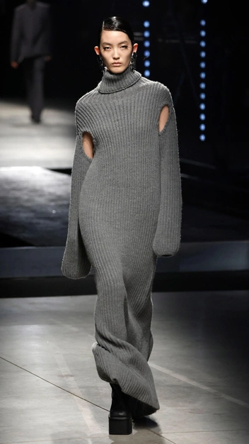 Пока одни дизайнеры повторяют в своих работах мини-юбки из нулевых, местные марки представляют поклонникам моды классические платья, шубы и пальто с длиной макси (читайте также: Это стиль: 10 трендов осени и зимы 2023/24 с Недели моды в Лондоне). Чтобы образ не получился скучным, они экспериментируют с материалами, выбирая для одежды полупрозрачные ткани или строгие полотна, сочетать которые следует с плотными колготками, как на показе Ferragamo.