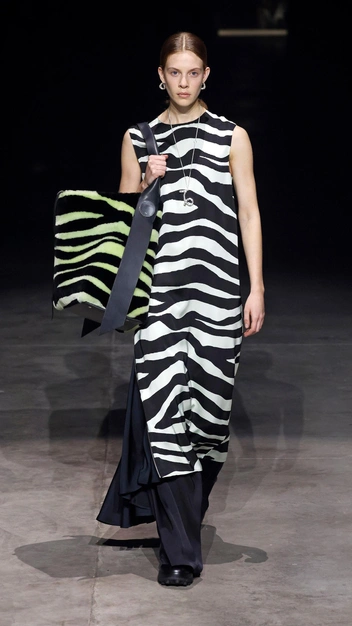 Если в Лондоне дизайнеры акцентировали внимание на нежных бутонах, то Милан выбирает сексуальность и выражает ее через звериные принты на одежде и аксессуарах. Это могут быть платья с рисунком зебры, как у Jil Sander, тигра, как у Blumarine, или шубы и пуховики с анималистичными мотивами, как у Philipp Plein. Если облачиться в такую дерзкую одежду вы не готовы, предлагаем начать с обуви или сумки.