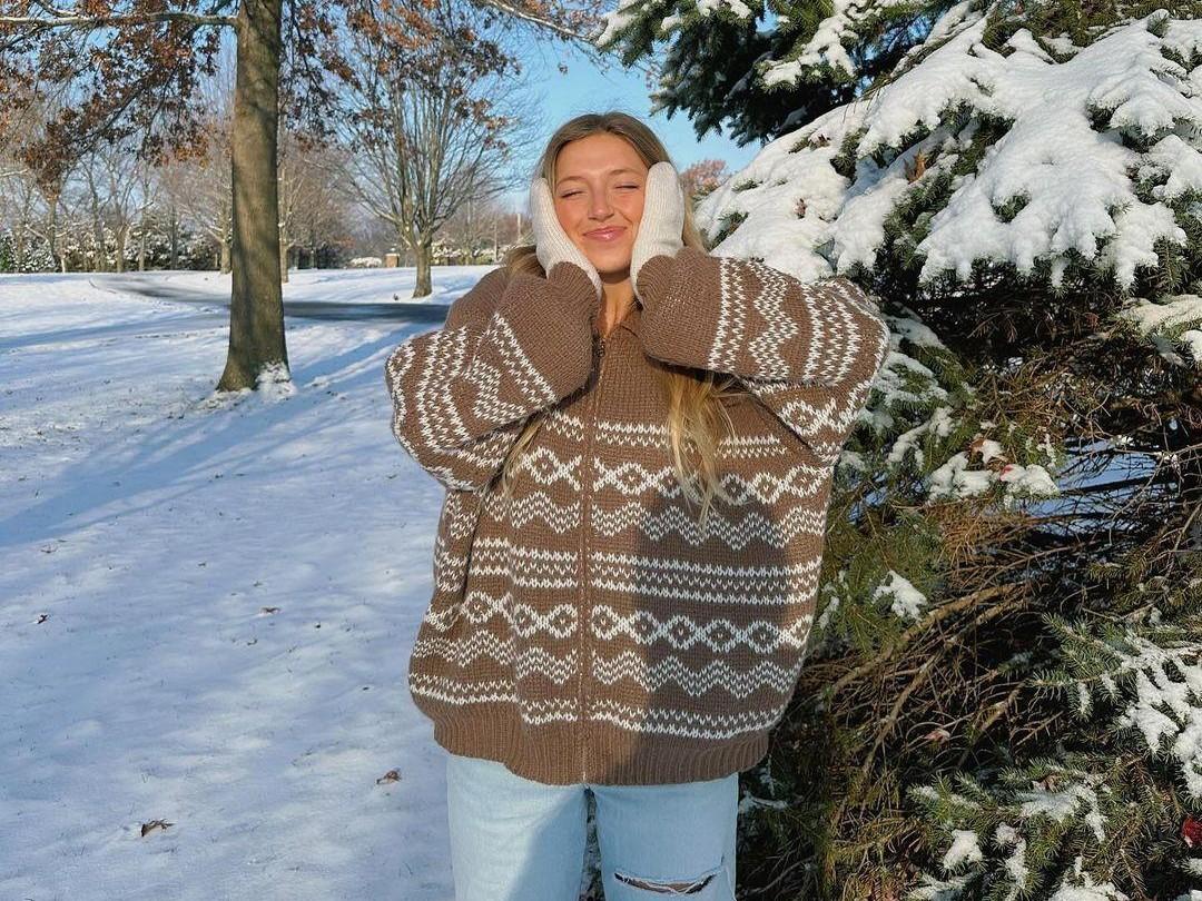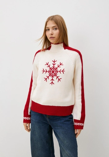 Рождественский свитер необязательно должен быть ярко-красным. Он может быть в светлых оттенках и с весьма минималистичным дизайном. Это очень на руку тем, кто обычно выбирает лаконичные и элегантные образы. Подобный джемпер отлично будет сочетаться с вашими любимыми строгими вещами: классическими брюками, кожаными лоферами и геометричными сумками (читайте также: Мечта молодежи: сумки, за которыми охотятся все зумеры — больше никаких Hermès Birkin).