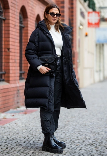 Классический дутик составляет органичный тандем с кроссовками, сапогами любой длины, ботильонами и кедами.