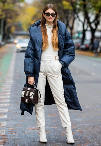 Пуховик-одеяло отлично смотрится в сочетании с луноходами, а ультрастильные ботфорты или ботильоны создадут неповторимый смелый образ.