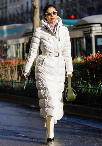 Пуховик-пальто — вещь почти универсальная по многим причинам. Во-первых, он позволяет спрятать под свою защиту легкие и изысканные утонченные образы. Во-вторых, в зависимости от погоды мы можем застегнуть пуховик под горло или носить нараспашку — получится разный эффект и визуал образа. В-третьих, стилизовать длинную вещь единого кроя намного проще, чем укороченные или базовые модели.