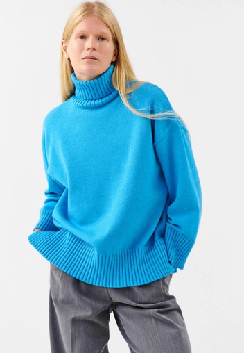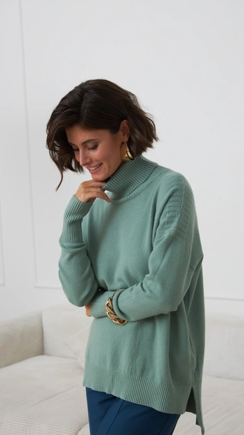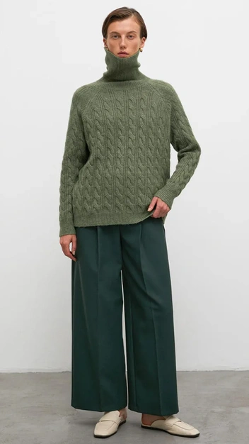 В холодный сезон стоит выбирать объемные свитеры с высоким воротом. Такие заменят шарф, а также будут выглядеть стильно и актуально. Выбирайте модели крупной вязки с широким воротом, чтобы уверенно носить весь осенне-зимний период.