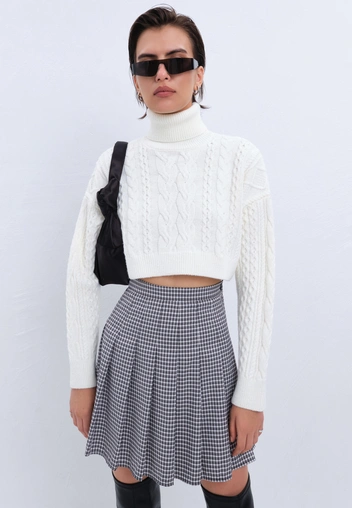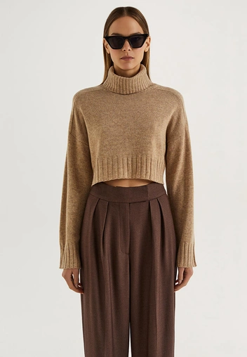 Прекрасным дополнением к джинсам, брюкам и юбкам с высокой посадкой станет укороченный свитер. Модель такого кроя поможет акцентировать внимание на линии талии, сохранив правильные пропорции фигуры, а также сделать образ более интересным и фактурным. Актуальны как свитеры базовых оттенков, черного, молочного и бежевого, так и более яркие и броские (читайте также: 15 самых модных цветов осени и зимы 2022/23).