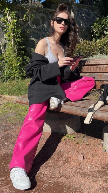 И мы понимаем, почему: с кожей, как и с мини, легко перестараться и получить совсем не тот образ, который вы себе представляли. Поэтому вот несколько лайфхаков от актрис Турции. Если вы надеваете кожаные брюки, все остальные элементы аутфита должны быть более строгими без провокационных разрезов и глубокого декольте. Экспериментируйте также и с материалами, например, верх можно сделать более воздушным и невесомым, надев шелковую блузу или расслабленный свитер.