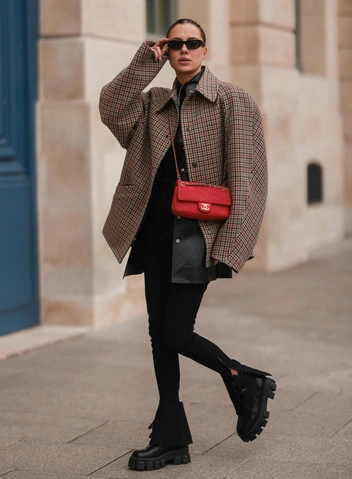 Переходим к более закрытым вариантам. Вопреки мнению о том, что ботинки на грубой подошве утяжеляют образ, в случае с полной ногой они работают наоборот. Подобные модели стройнят девушек благодаря контрасту и одновременно уравновешивают пышный верх. Эффект заключается как раз в массивной подошве, которая делает щиколотки более изящными и аккуратными. По этой же причине обладательницам полных ног можно смело носить лоферы на крупной подошве.