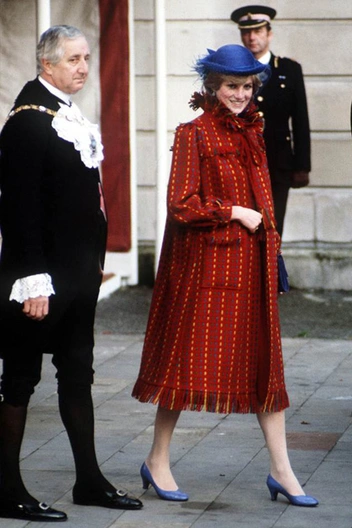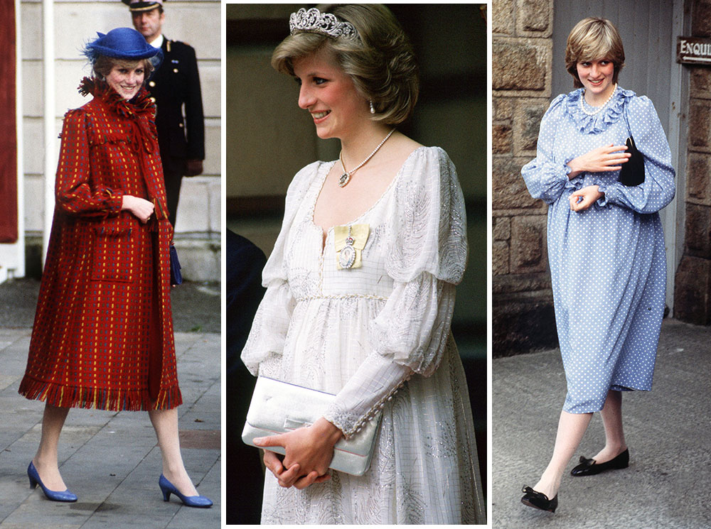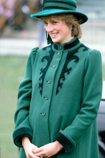 Сразу после официального объявления о первой беременности принцесса Уэльская появилась в бордовом пальто Bellville Sassoon свободного кроя, дополненном шляпкой цвета индиго от John Boyd и туфлями на небольшом каблуке в тон, и с этого момента любовь леди Ди к разнообразной яркой и акцентной верхней одежде только росла. В это время принцесса чаще появлялась в пальто насыщенных изумрудных и красных оттенков. Многие «беременные» наряды Спенсер были разработаны дизайнером Кэтрин Уолкер – впоследствии именно она стала любимым модельером принцессы Уэльской. Кроме того, фаворитом принцессы стал также Дэйвид Сассун, дизайнер того самого первого пальто Bellville Sassoon.